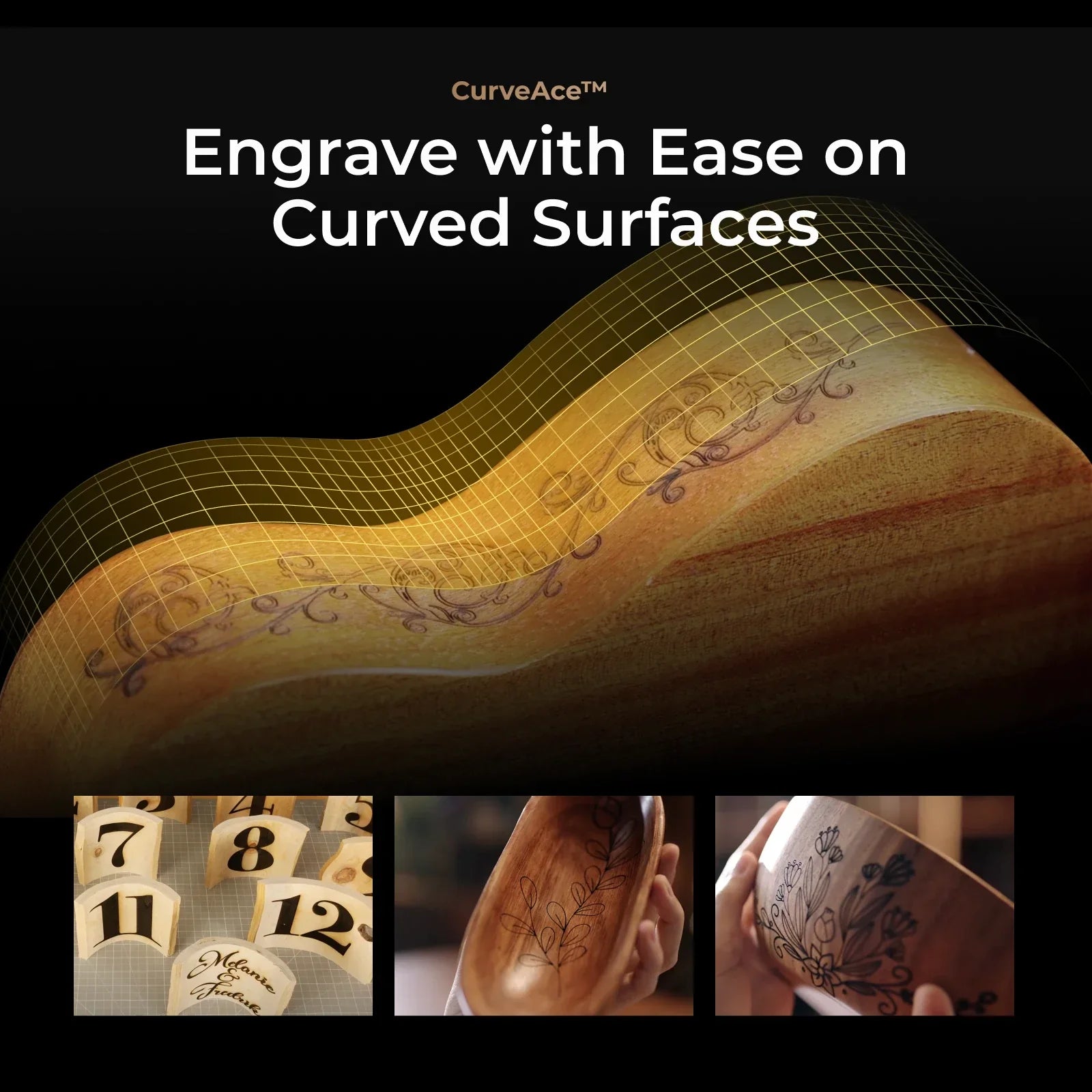 • 3D Curve™ Engraving: Seamlessly engrave on curved surfaces.